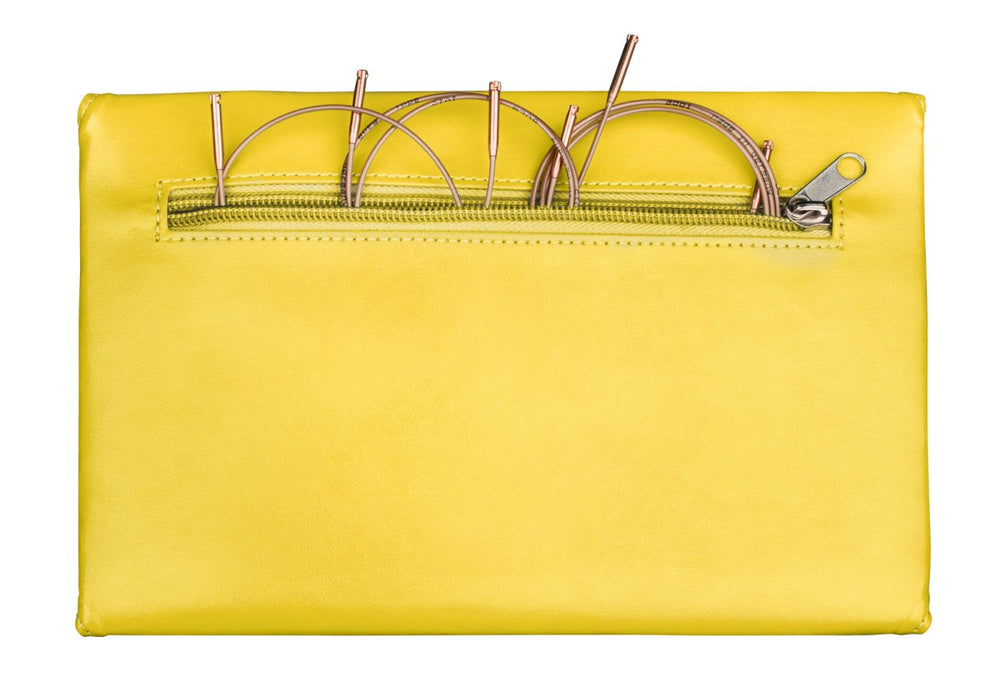El set incluye puntas de bambú en tamaños de 3,5 a 8,0 mm, tres cables dorados (60, 80 y 100 cm), dos topes HeartStopper, dos conectores (largo y corto), un elegante broche dorado y almohadillas addiGrip para un mejor agarre. Fabricado en Alemania y presentado en un resistente estuche textil para guardarlo y transportarlo fácilmente.